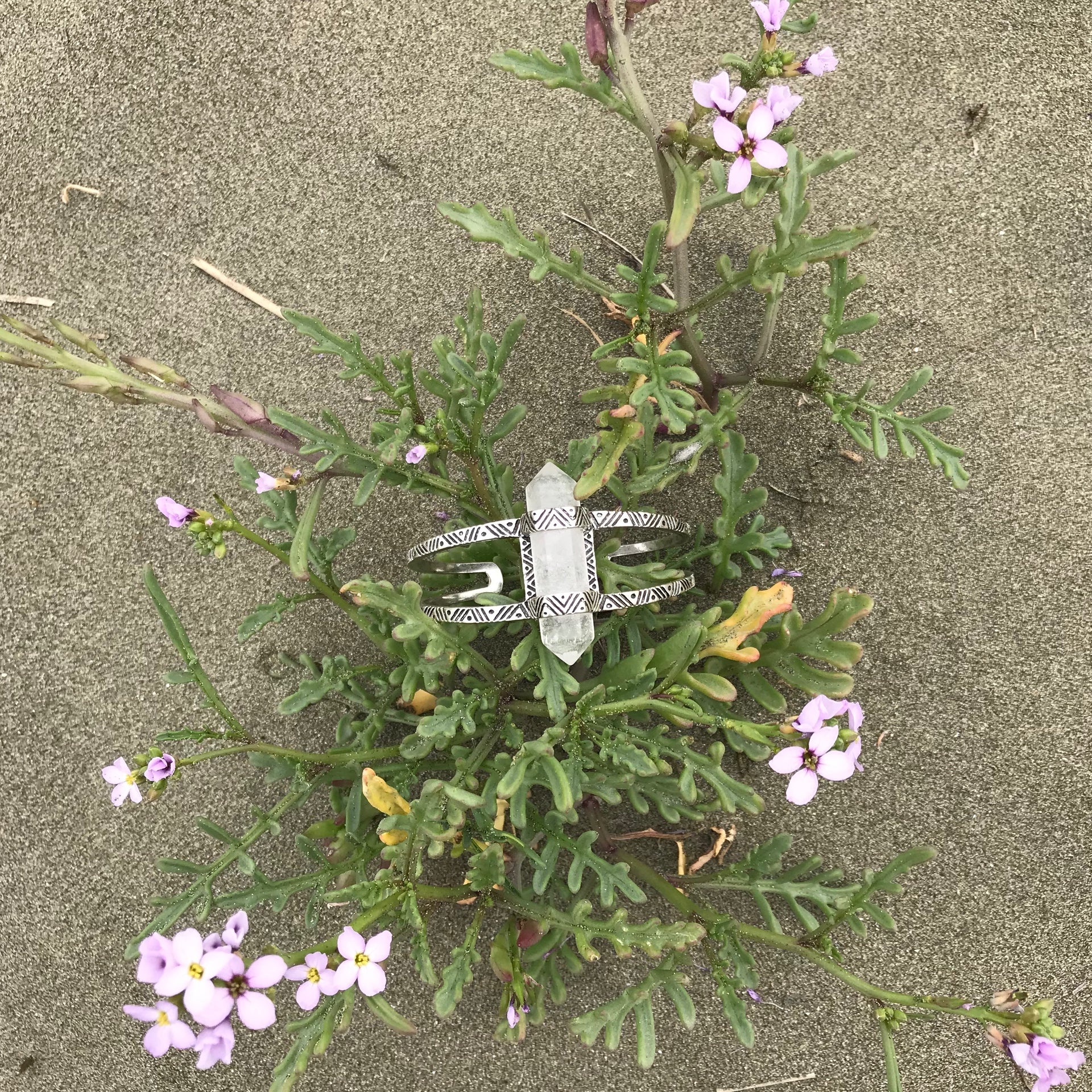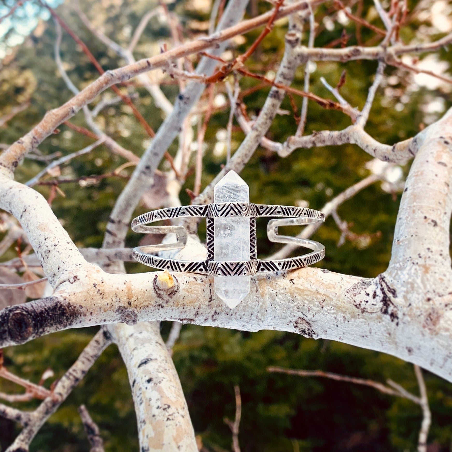 - A Natural Quartz Crystal set in a Statement Cuff Bracelet.
