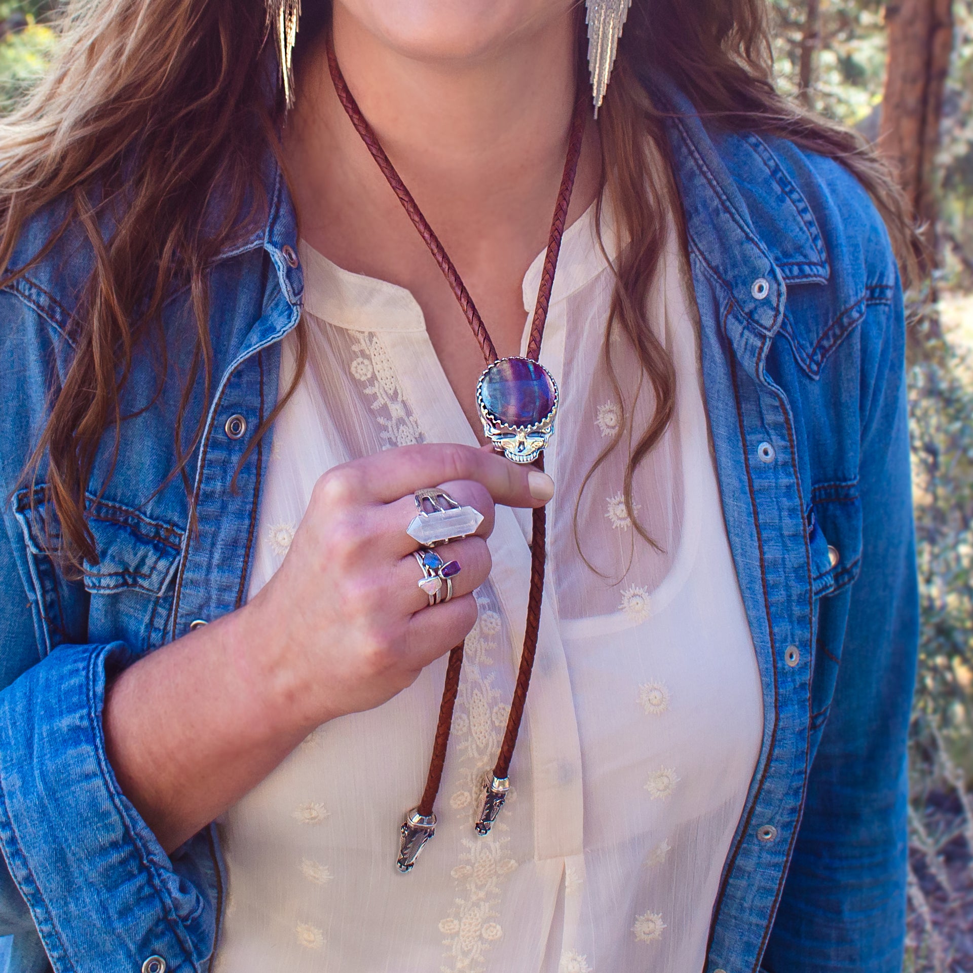 - A Set of 3 Stacking Rings, featuring natural Opal, Labradorite and Amethyst stones / crystals set in 925 Sterling Silver