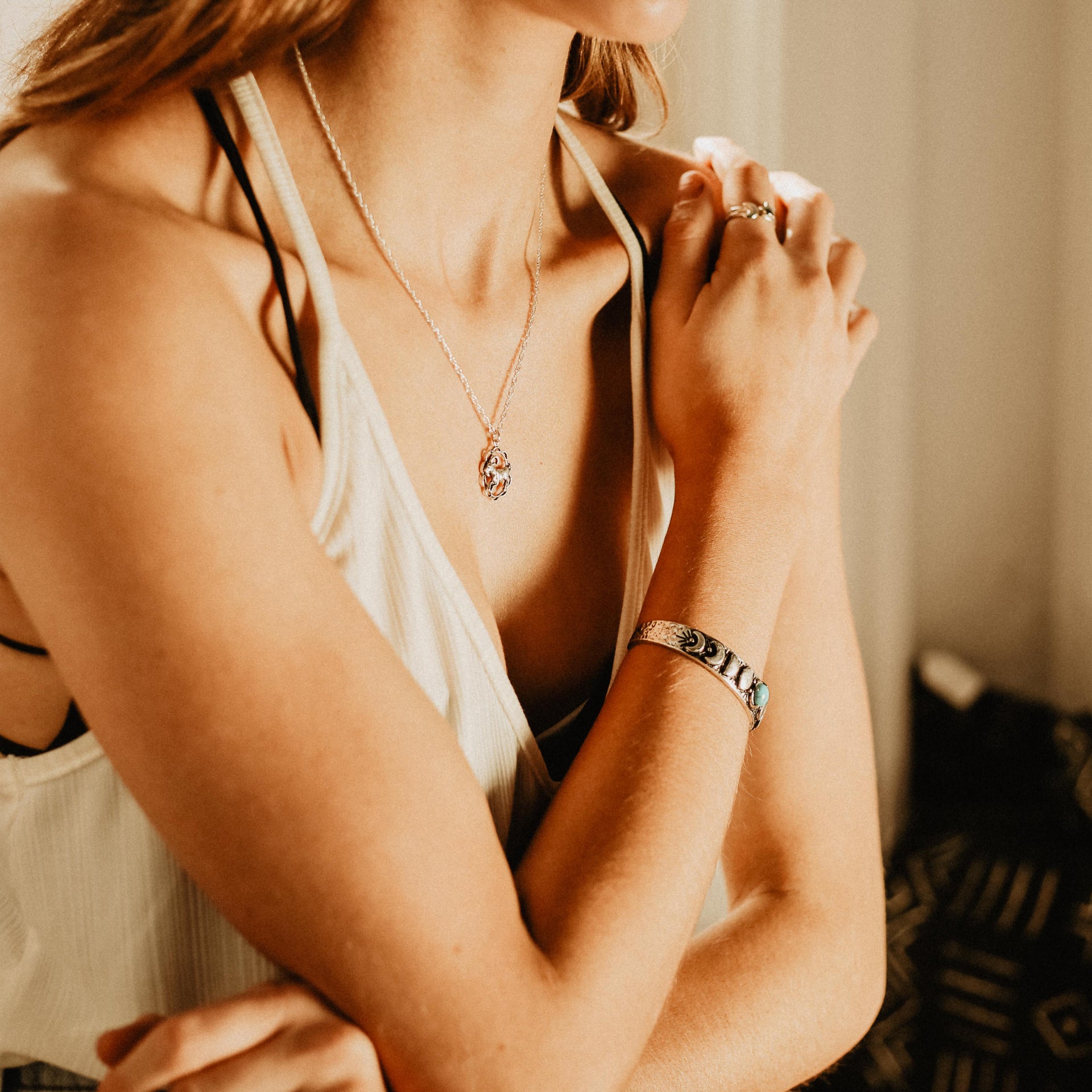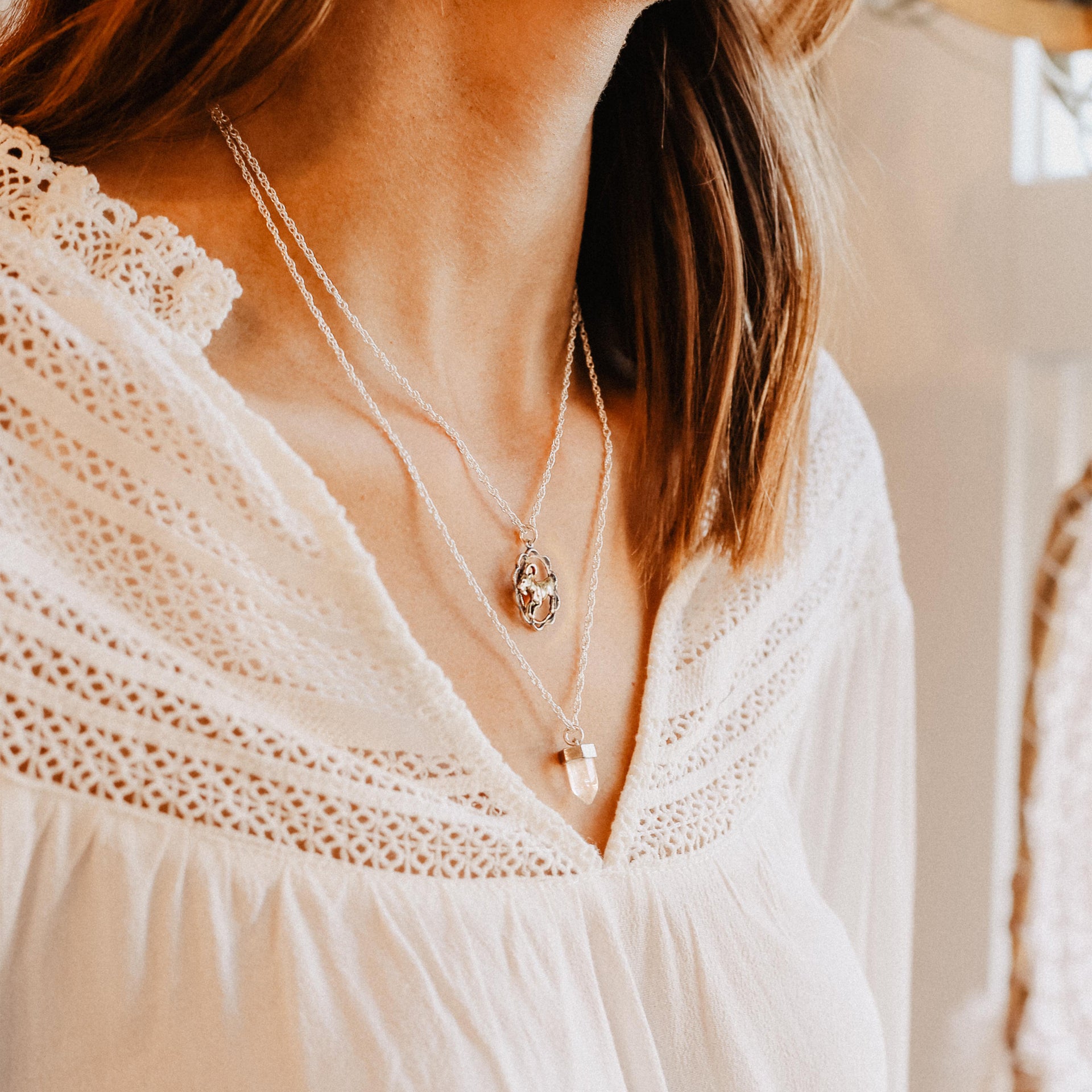 Double strand: Chains measures 17" and 20" around with 2" extender chain.