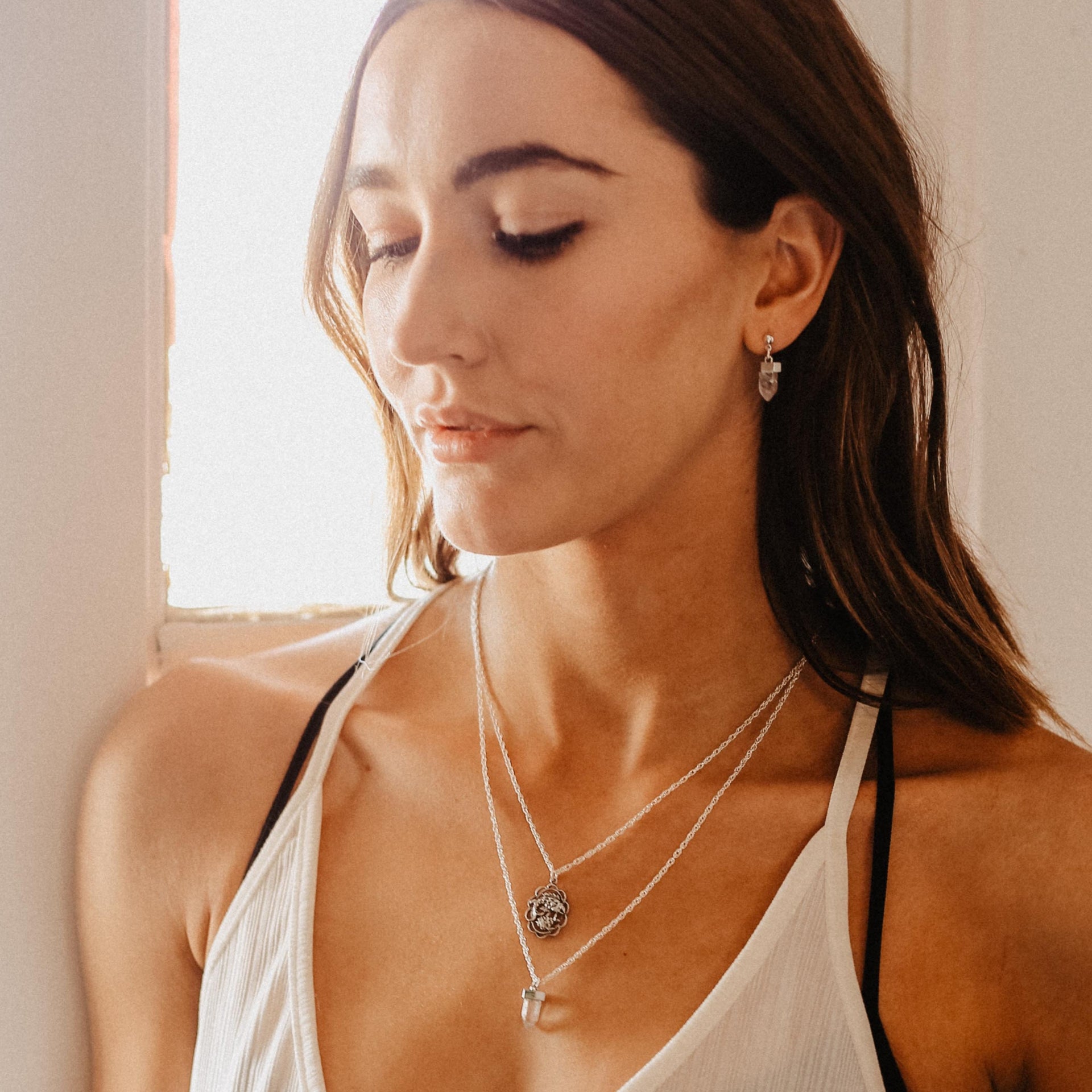 Choose from single strand, or double strand with crystal charm.