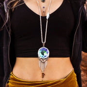 - Please choose ~ With our Without Chain Fringe. Pendant without chain fringe measures approx. 3.5" long - including skull & bail. Pendant with chain fringe measures approx. 5" long - including fringe, skull & bail.