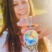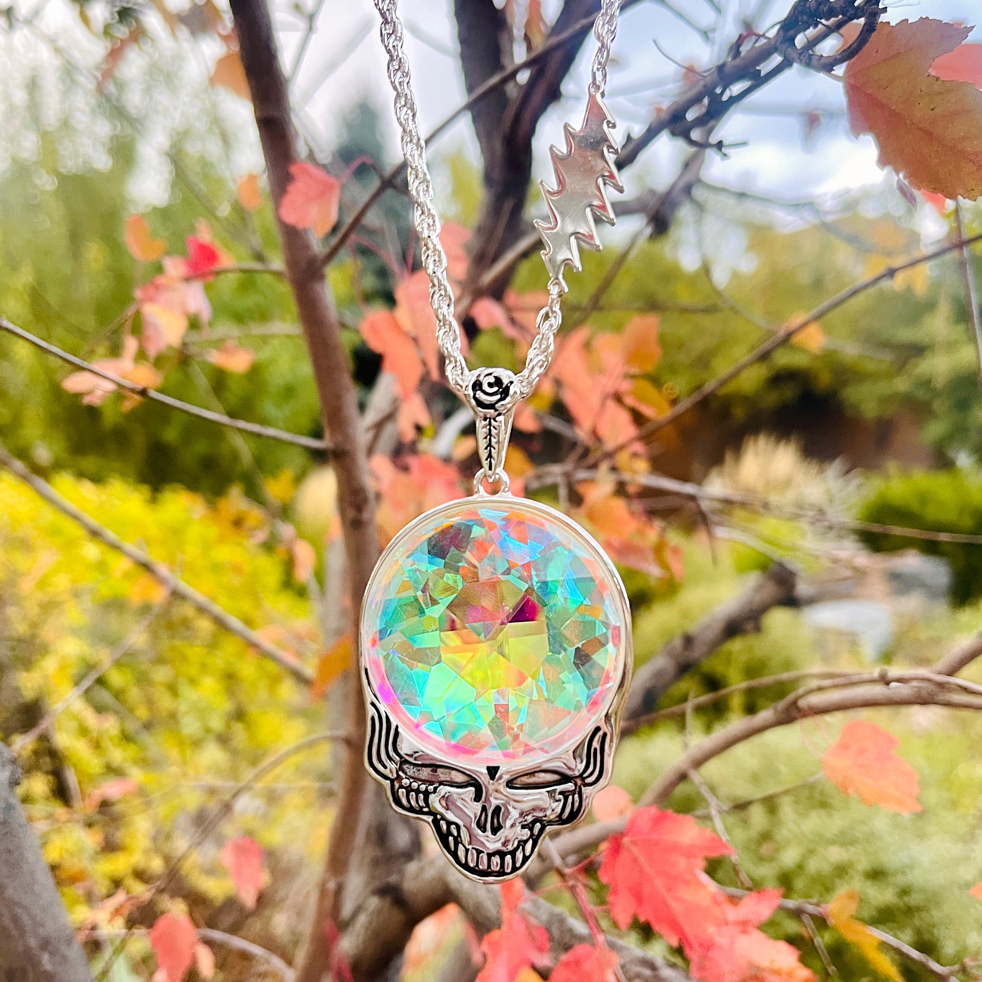 - A Classic Steal Your Face Skull cast in Silver plated brass, with Rainbow Prism Crystal and Rose design on Bail.