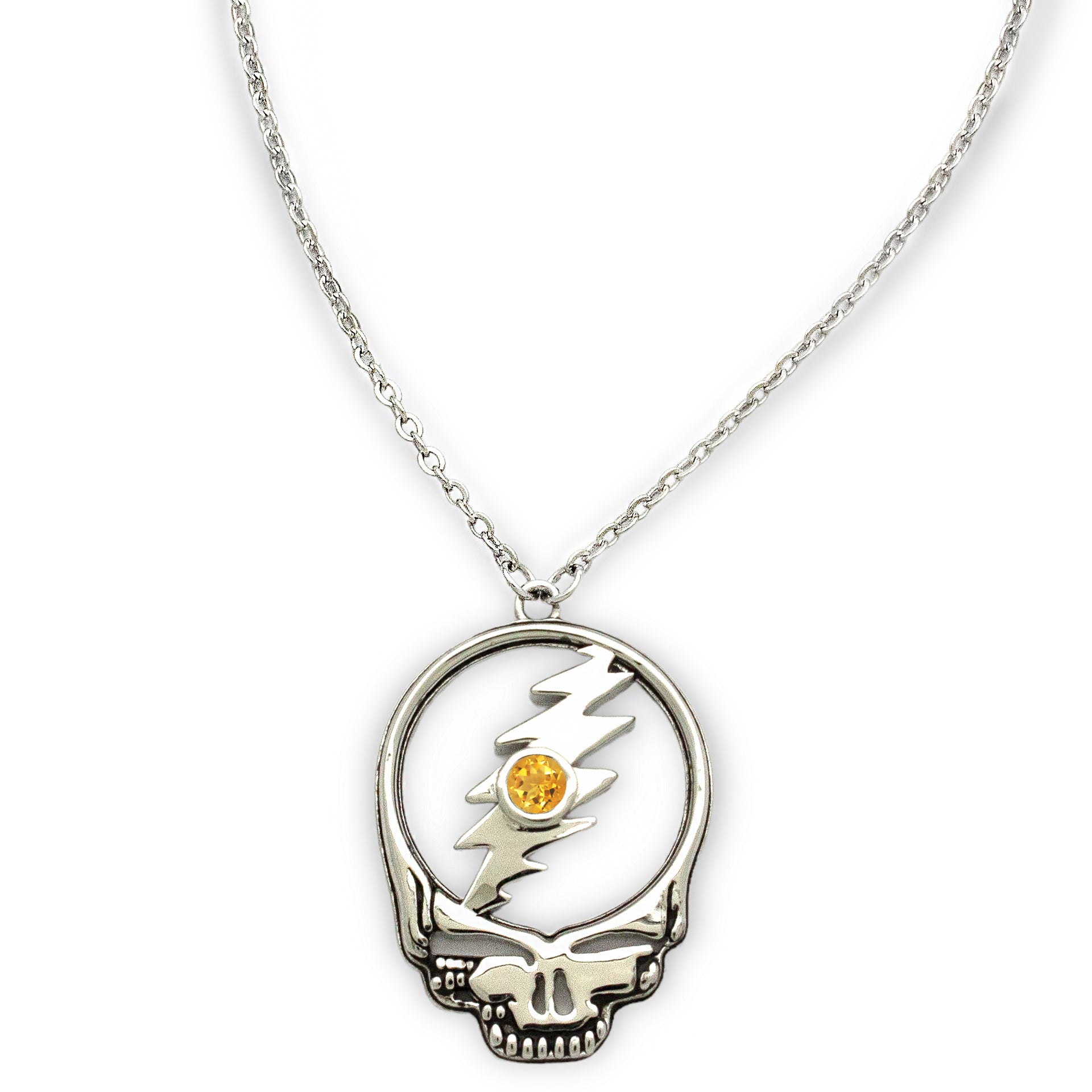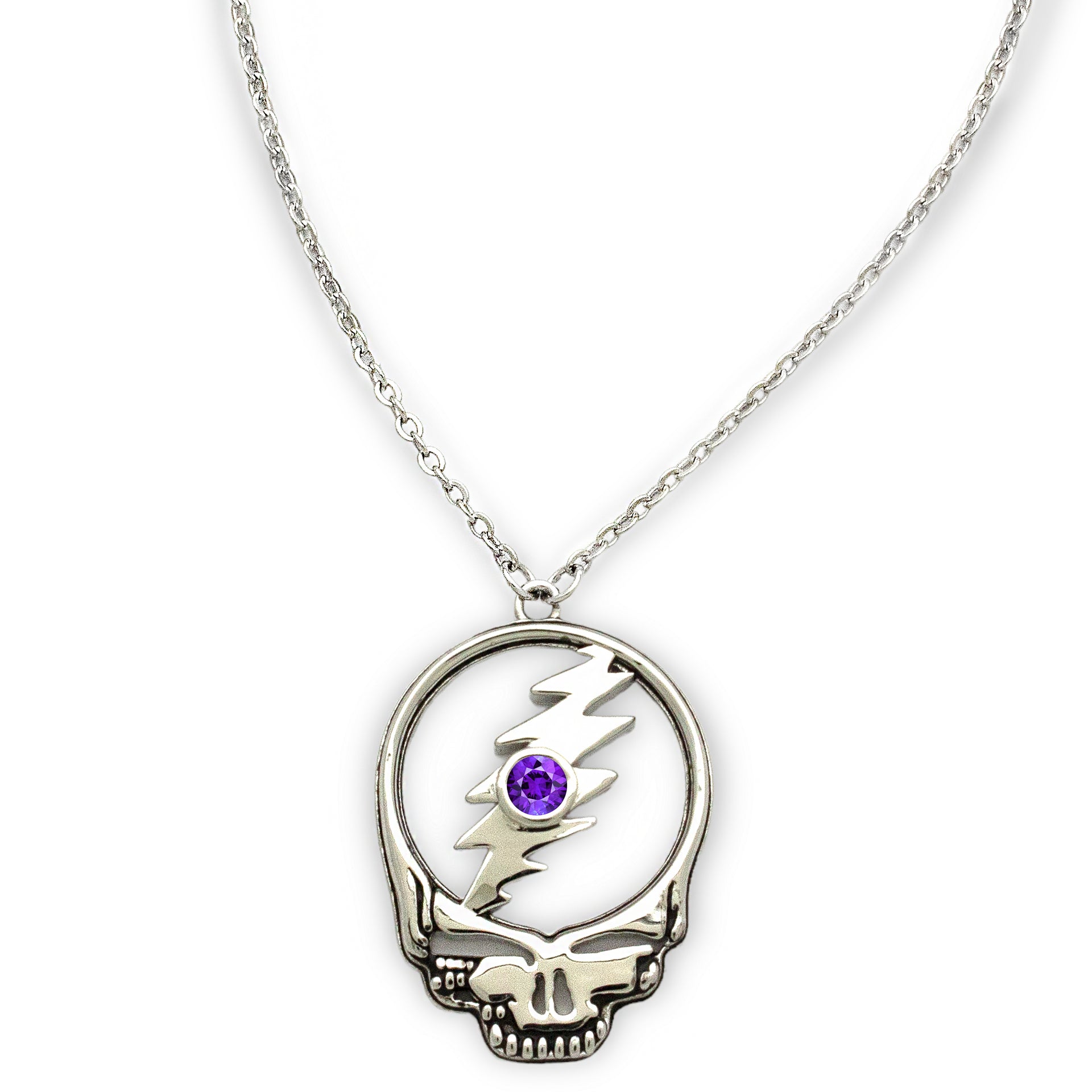 - An Iconic Steal Your Face Pendant Necklace, Cast in Sterling Silver, Featuring all 12 Birthstones.