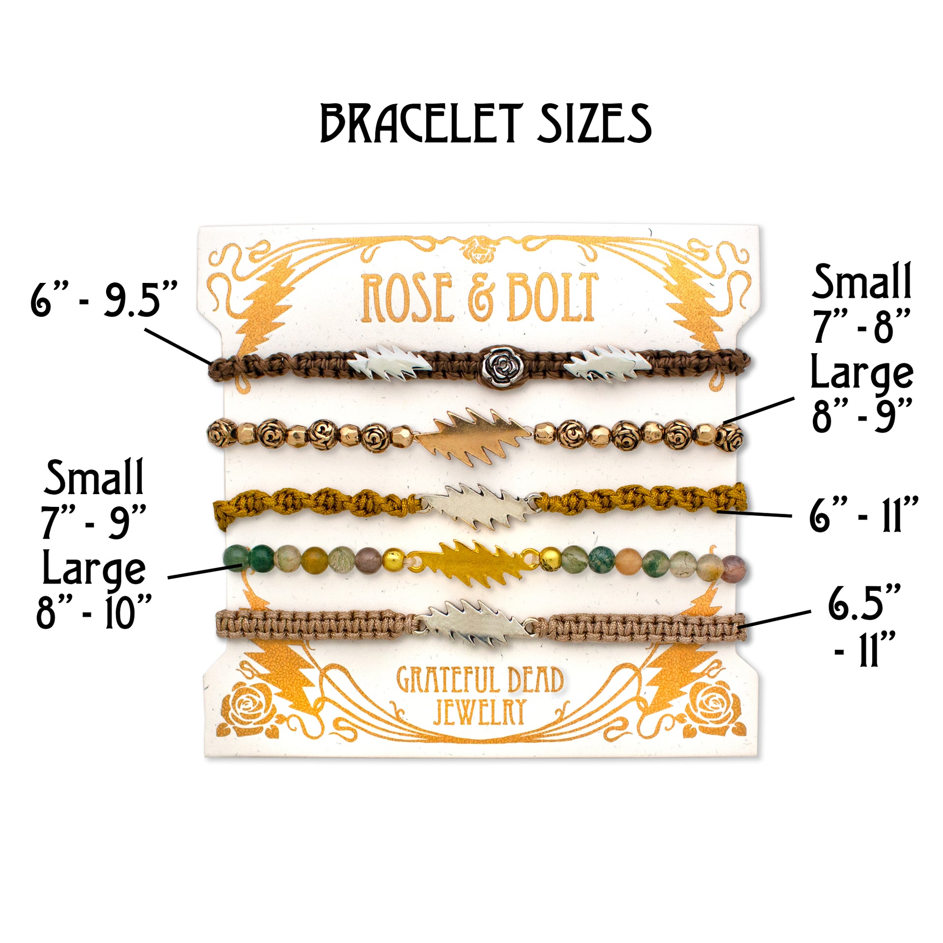 Please choose from large or small wrist size. See size chart for measurements. Only the Beaded bracelets vary, for small and large sizes. All bracelets are adjustable.