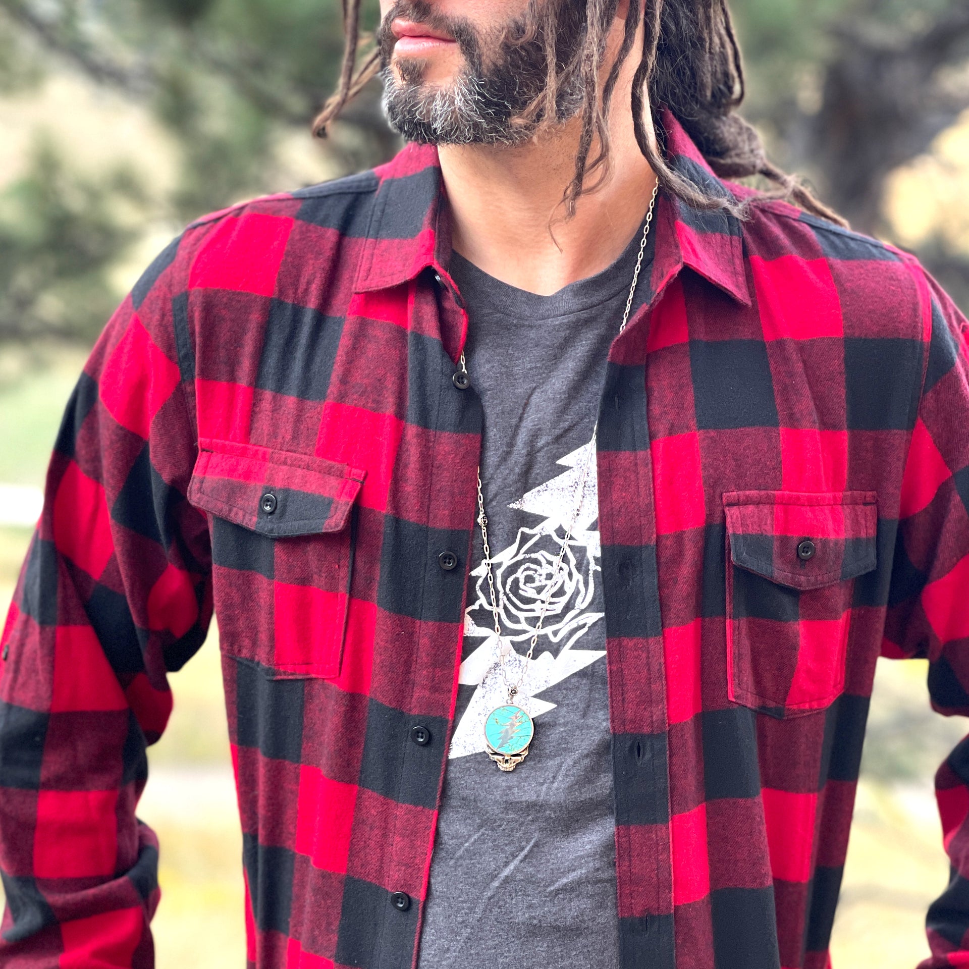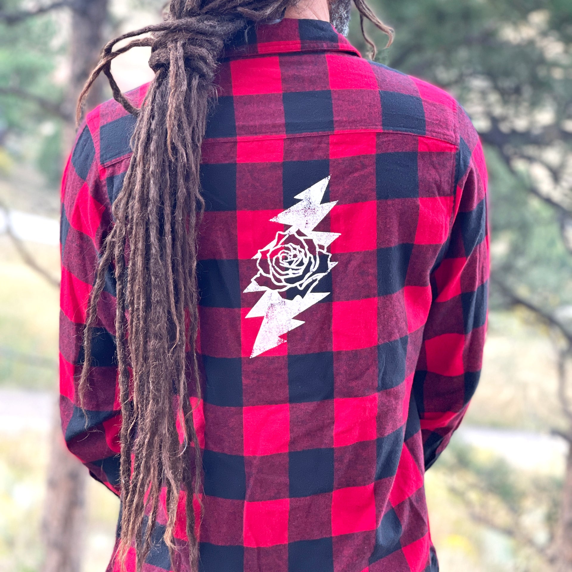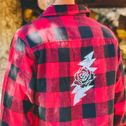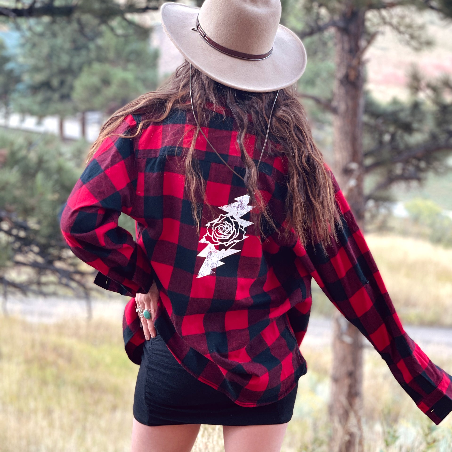 - Rose & Bolt Logo, with distressed texture, printed on the back.