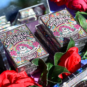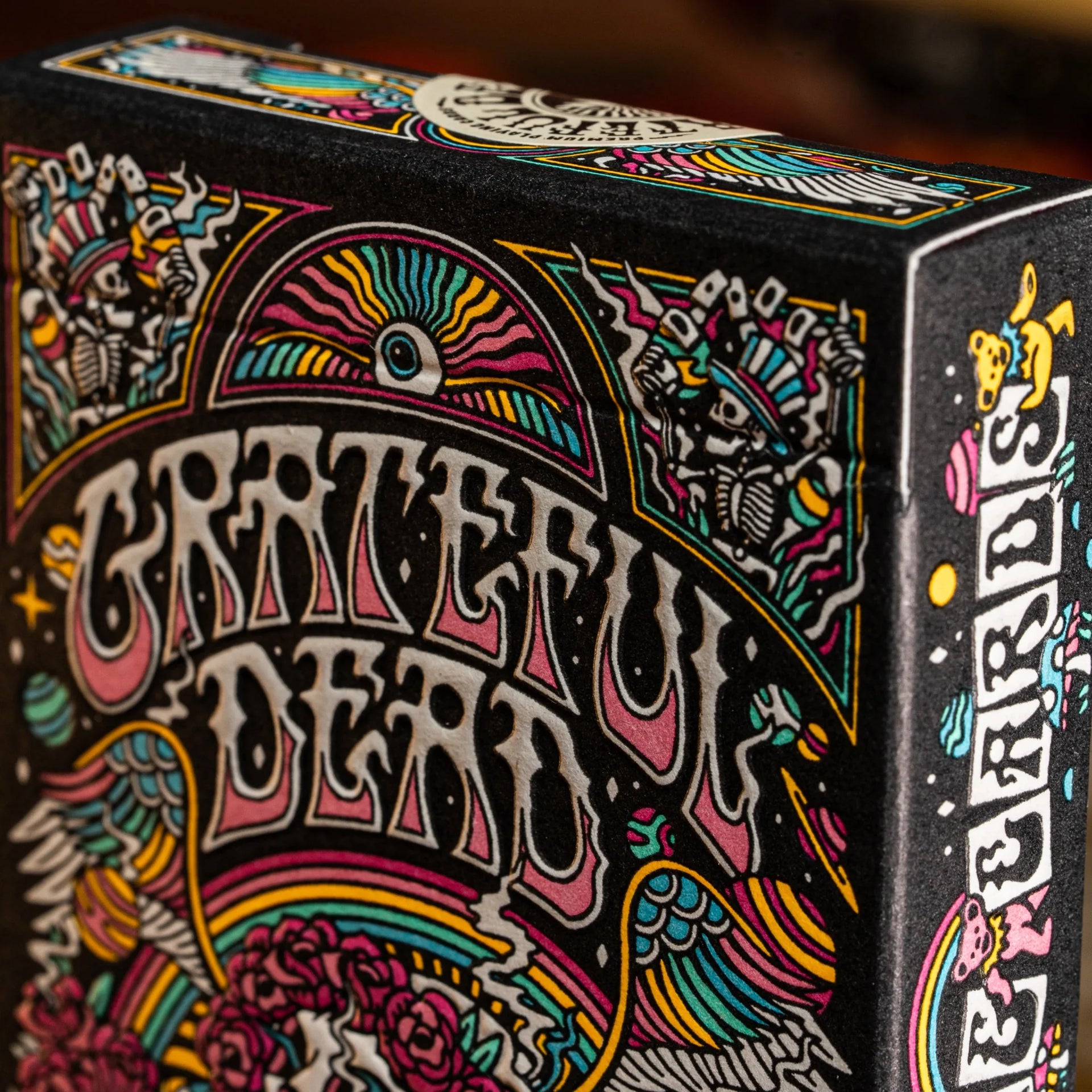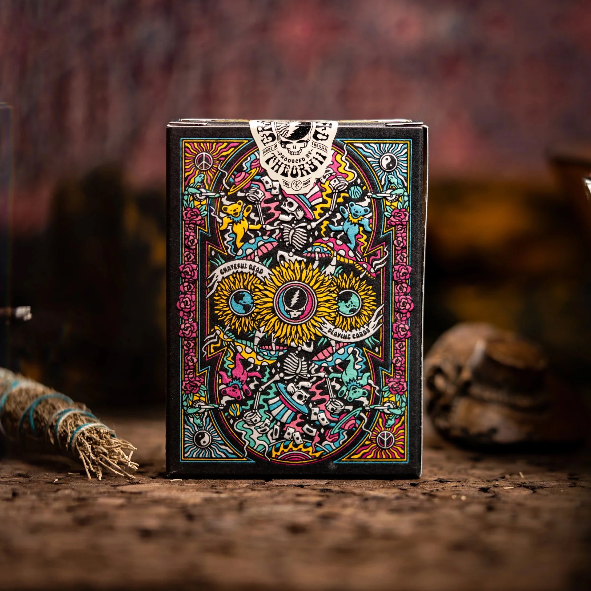 - Beautiful Illustrations adorn the box and cards: Skulls, roses, dancing bears, mushrooms, sunflowers, peace signs, yin-yangs, rainbows, eyesballs, psychedelic swirls ~ Each deck is a colorful and incredibly detailed work of Grateful Dead art!