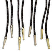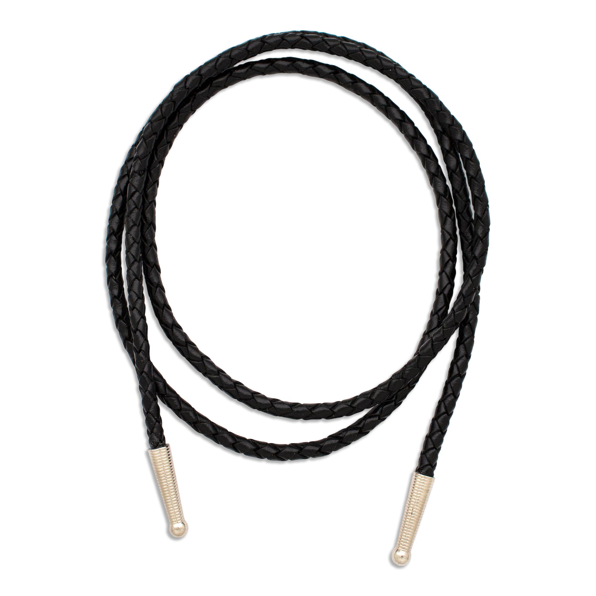 - Genuine braided leather Bolo Cord, in black, with western style silver & gold plated tips.