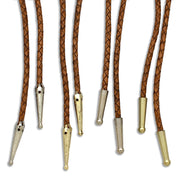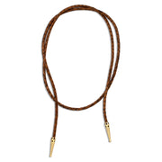 - Genuine braided leather Bolo Cord, in light brown, with western style silver & gold plated tips.