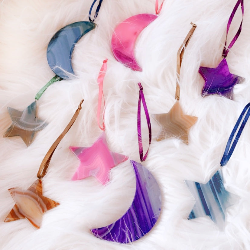- Stars measure 6" long and Moon measures 6.5" long (including ribbons)