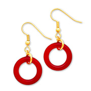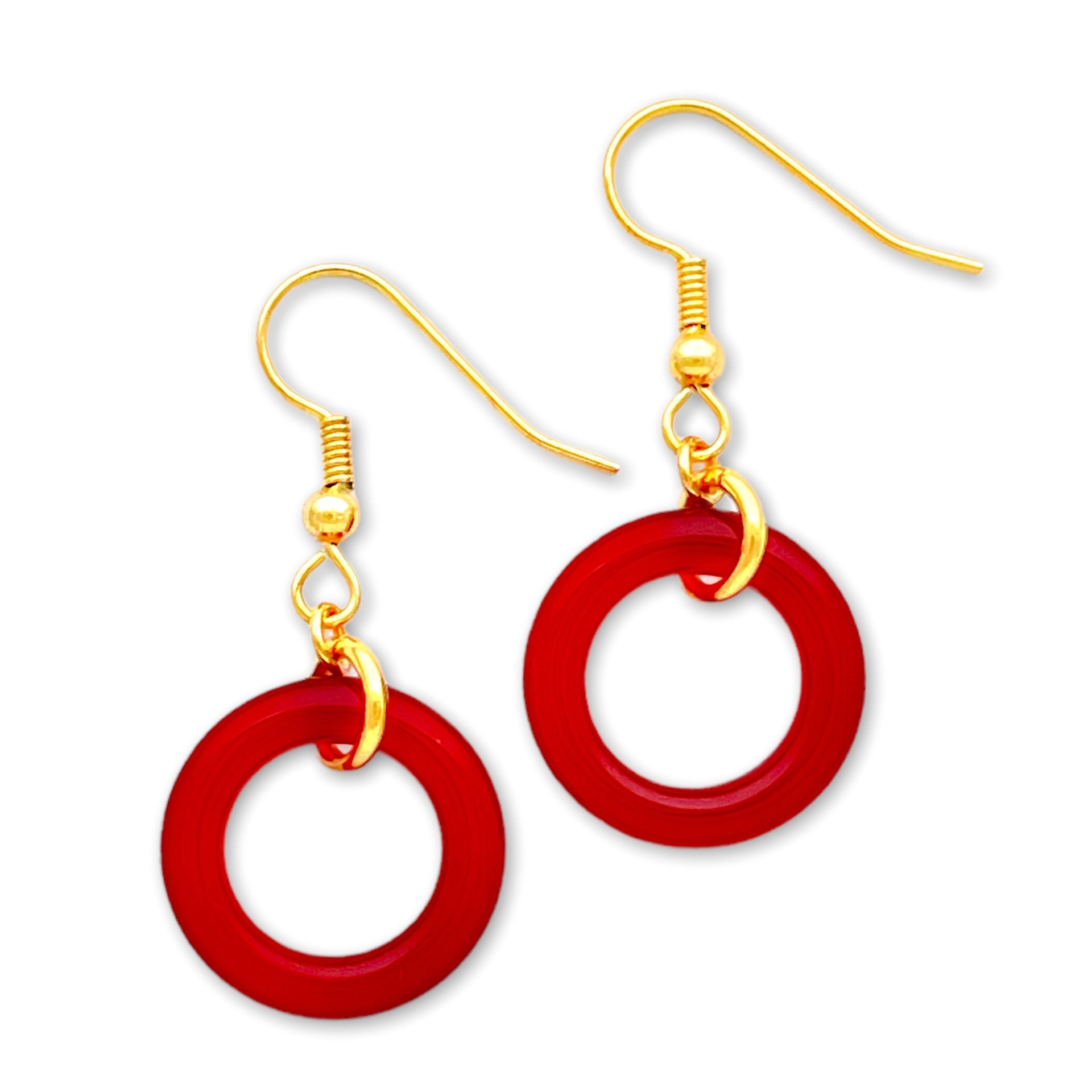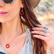 - Red Agate Crystal charms, hang from golden ear wires.